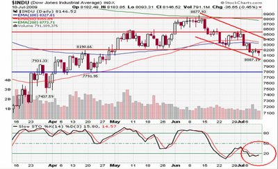 DOW JONES: el precio ha terminado de romper sus niveles de soporte y el canal bajista ahora es más claro. Actualmente tenemos altos niveles de sobreventa lo que podría llevarnos a un rebote buscando el lado superior del canal.