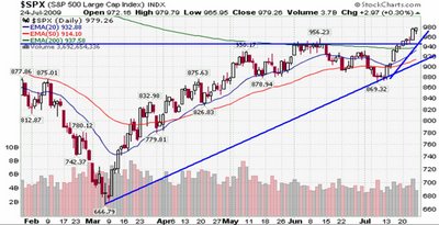 SP500: Similar situación que la del resto de índices. Soporte en 950 y nueva resistencia alrededor de 1000 (también EMA20 de gráfico mensual), además de un alto grado de sobrecompra.