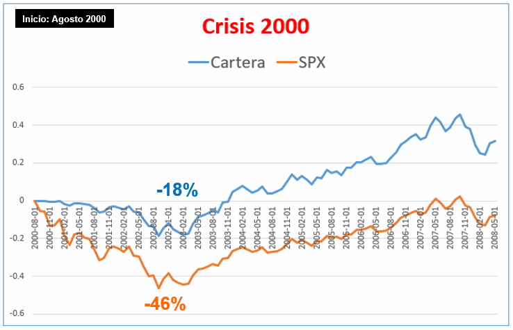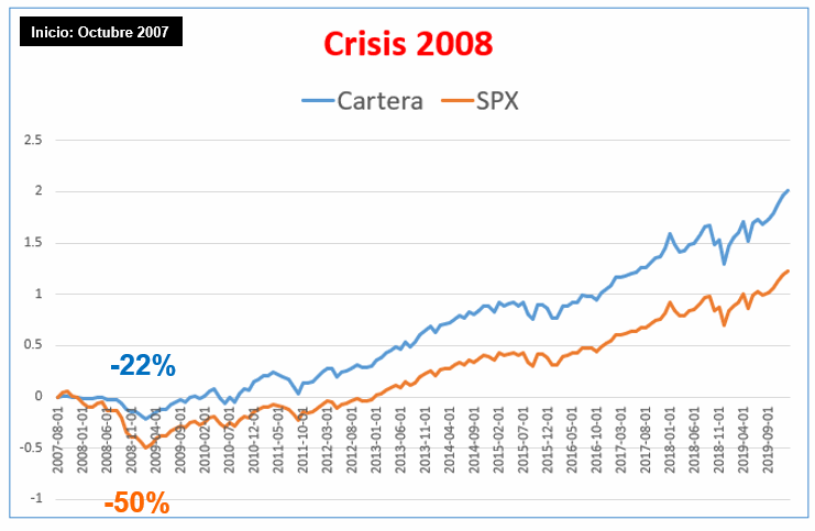 Máximo dradown de tu cartera del 22 por 50% del SP500.