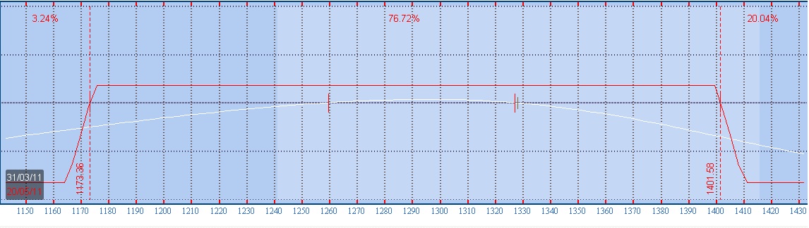 Además la Iron Condor está algo descompensada pues tengo el strike de 1400 a 70 puntos y el de 1175 a 150 puntos aproximadamente
