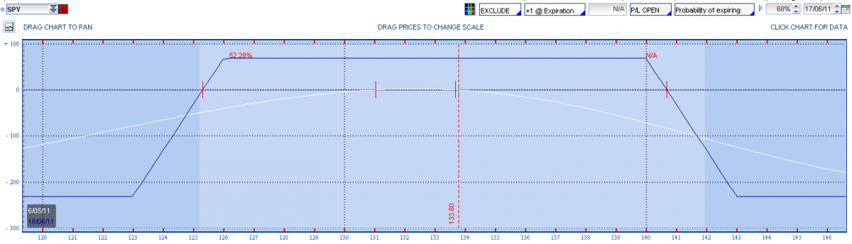 La volatilidad ha subido bastante estos días. Ayer era un día perfecto para rolar posiciones a Junio y/o vender volatilidad (ejemplo: Iron Condor JUN 123-126/10-143):