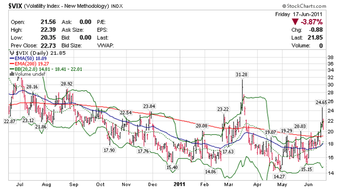 La semana pasada, el VIX saltó a los 24.65. Nadie sabe si veremos el VIX en mayores niveles próximamente, pero de momento tenemos las condiciones idóneas para un giro de corto plazo, ya que la situación macro se mantiene igual (incluso podemos decir mejor, tras las declaraciones del segundo rescate sobre Grecia), la situación sentimental es igual de mala y la técnica exactamente la misma que la de la semana pasada.