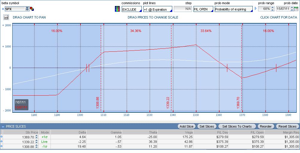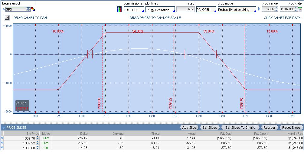 Aprovechando una Iron Condor que metí el 26 de Mayo, y de la que hice seguimiento en este post, quiero comparar la situación actual de dicha posición con 3 escenarios.
