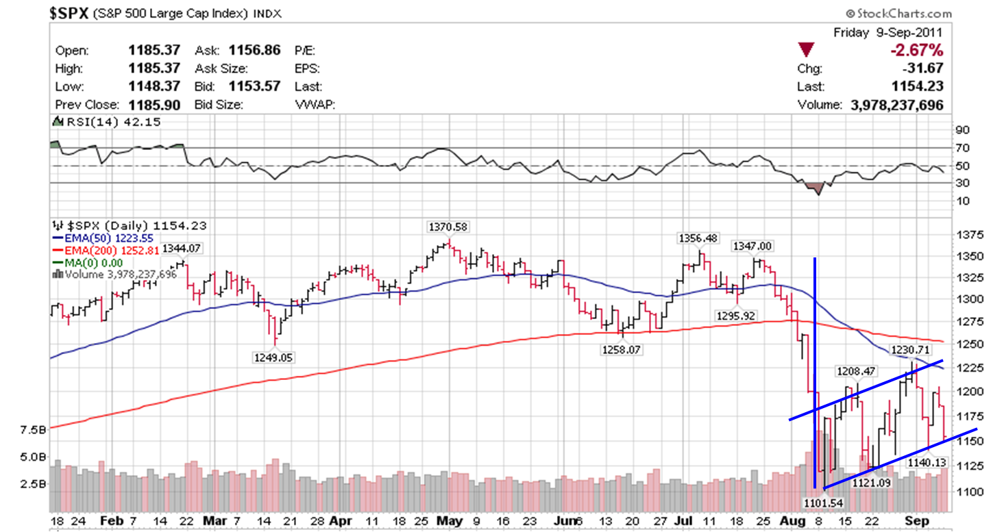 A nivel técnico, los índices están formando una figura bajista (bearish flag), que de confirmarse, nos podría llevar el S&P500 hasta los $1000. Como diría Homer, oourrhrrhr, será un muy buen nivel para ponerse extra-largo.
