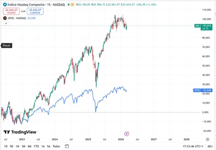 Rentabilidad histórica del Índice Nasdaq Comp vs ETF JEPQ