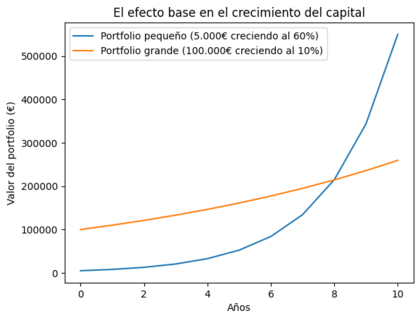 Además, se dará el efecto base, y es que, partiendo de un capital elevado, los crecimientos porcentuales empiezan a traducirse en cantidades de dinero realmente relevantes.