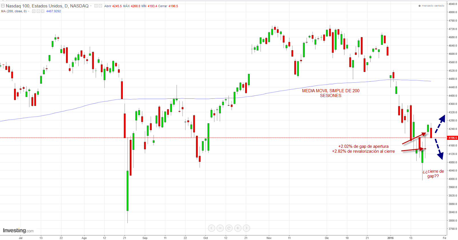 3- Estuvieramos por debajo de la media movil de 200 sesiones.