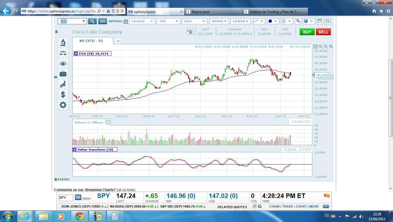 Observando los strikes veo que KO no dispone precisamente de muchos en Octubre/12 y se hallan más bien separados, por lo que quizás en algún momento no valga la pena el abrir estas dos posiciones por imperativos de horquilla y comisiones.
