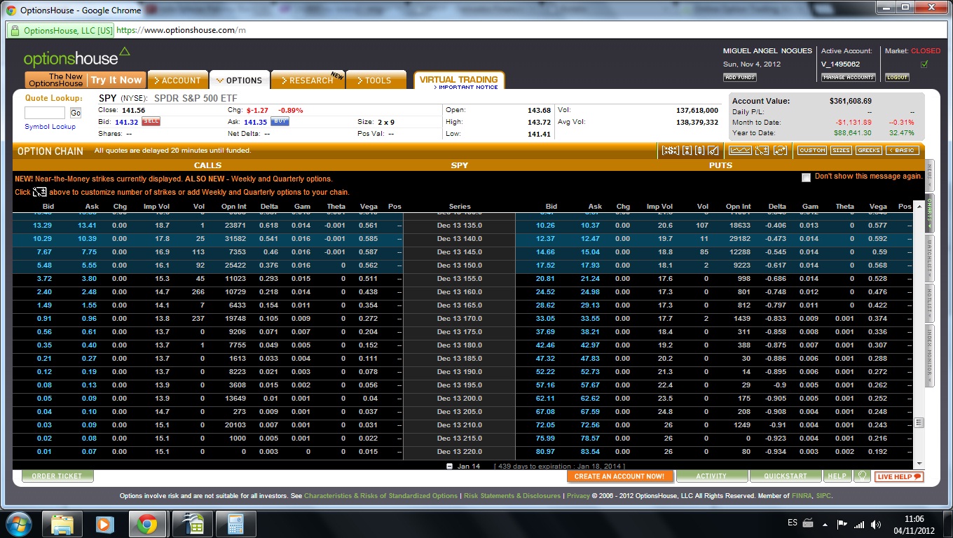 Adjunto una imagen de call s/ibex y call s/spy con vencimiento en Dic/2013 para comprender un poco la diferencia. Tenemos una call 17000 s/Miniibex Dic/2013 con volatilidad implícita de 5,1% y una call 220 s/Spy Dic/2013 de 15,1%.