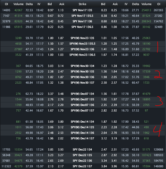 Esta semana CBOE instaura opciones semanales, pero ya negociables en todas las semanas del mes. Me explico, se van a poder negociar opciones weeklys que vencen el próximo viernes, también las que vencen el 30 de Noviembre, las que vencen el 7 de Diciembre y las que vencen el 14 de Diciembre. O sea, tendremos además de las opciones mensuales tradicionales, opciones con vencimiento a una, dos, tres y cuatro semanas. Además parece que a los retail, se nos dan todas las facilidades para operar opciones binarias con vencimientos muy cercanos en el tiempo, típicamente intradiarias y en consecuencia muchas mentes inquietas se plantean si no son todo ventajas con este tipo de instrumentos. Yo la única ventaja que les veo es que las pérdidas quedan limitadas a la prima pagada, pero planteadas incorrectamente este tipo de opciones son una pura lotería.