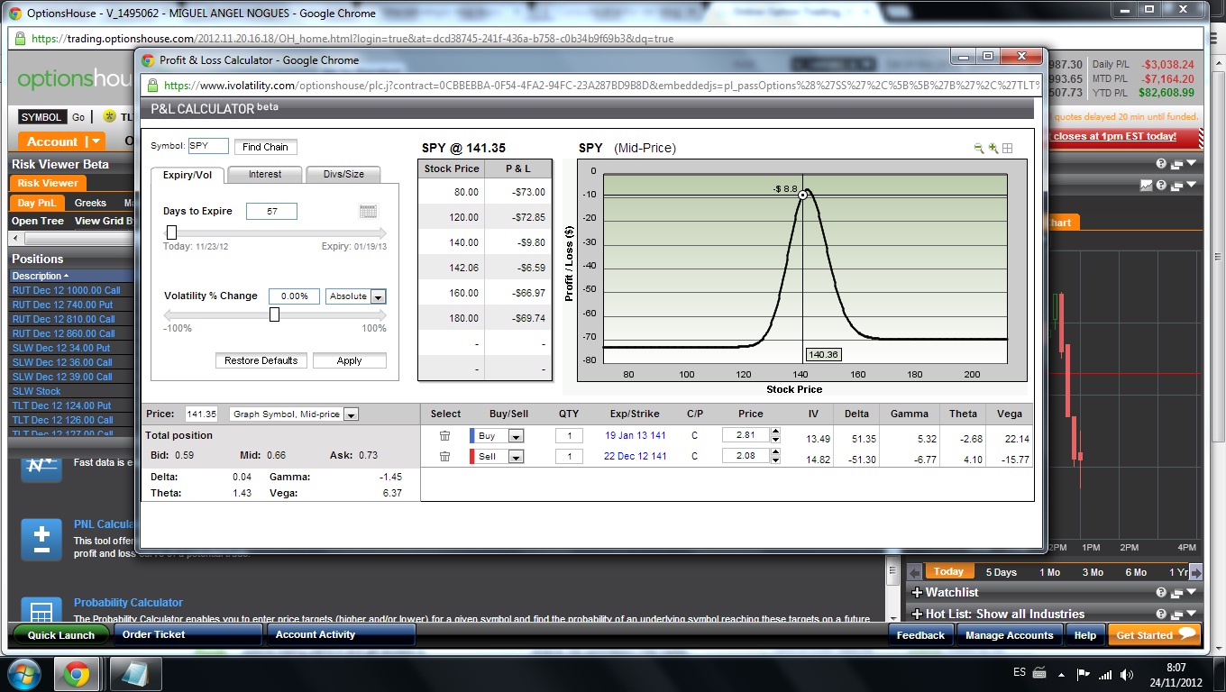 De entrada, un calendar horizontal construído a dinero será complicado de gestionar y requerirá ajustes frecuentes, aunque su ratio risk-reward es mucho más elevado. Sin embargo posiblemente requiera de numerosos ajustes.