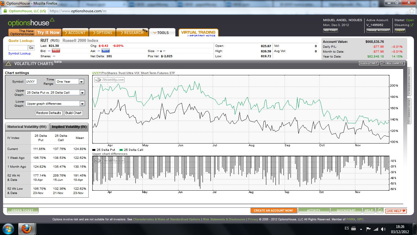 Uso un vencimiento lejano y una relación 1:2, por si el 2013 fuera un año de bruscas caídas, para poder efectuar algún tipo de ajuste si hiciera falta, caso de subida rápida del UVXY.