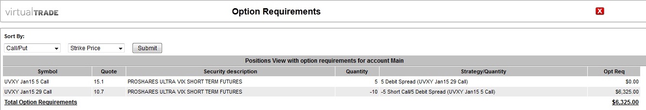 Una de ellas era un call ratio spread sobre UVXY, el etf apalancado y referenciado a los futuros del VIX.