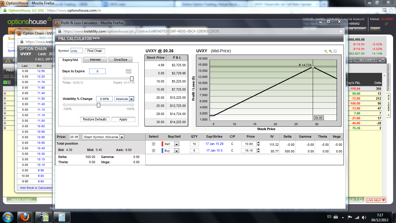 Una vez perdida la cuenta demo de OptionXpress, voy a desarrollar algunas de las posiciones interesantes que había en dicha cuenta.
