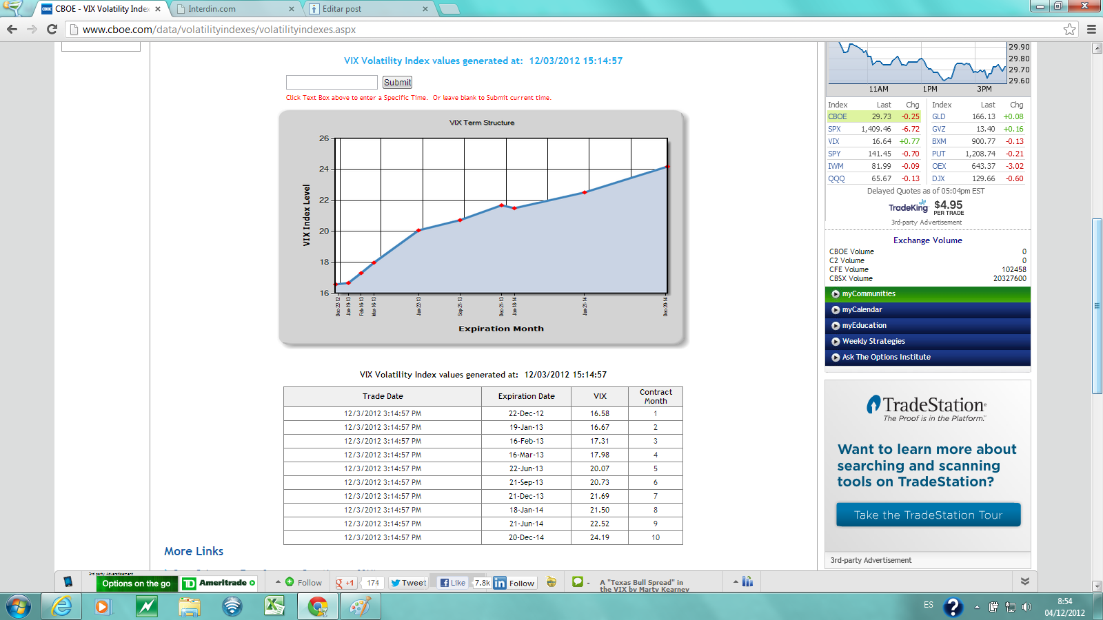 Incorporo aquí también imagen de situación de contango en la curva de futuros del VIX en sucesivos vencimientos.