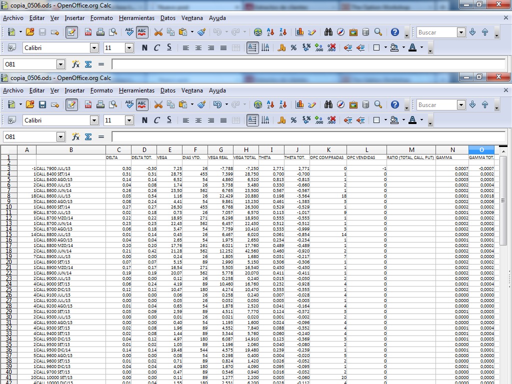 Esta posición suele incrementar su valor en las subidas y normalmente en dichas subidas las garantías también aumentan. Al ser gamma positiva en el lado de la call las plusvalías se incrementan si sube el ibex al aumentar la delta de las call. Pero si el ibex cae dicha gamma hace que las plusvalías decrezcan más lentamente al disminuir asimismo la delta de las call.