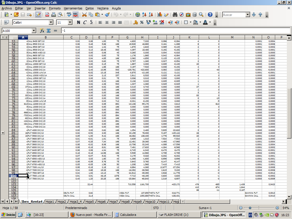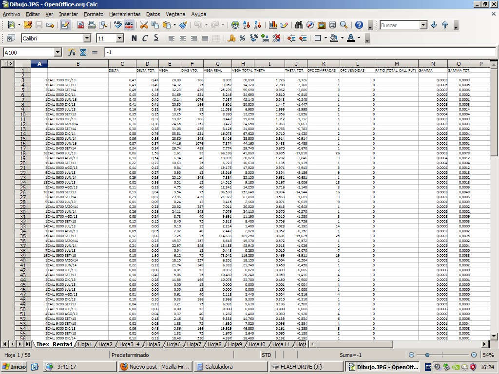 He retocado también ligeramente el plan de trading contemplando sólo cuatro call vendidas que tengan cargo de garantías por cada call comprada. El ratio antes estaba en cinco call vendidas con cargo de garantías por cada call comprada. Como siempre trato de ir positivo tanto en delta, como en vega, como en gamma.