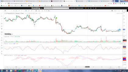 En el gráfico semanal tenemos a Air France - KLM con el MACD cortado al alza e indicador Fisher cortado al alza (el MACD semanal se corta al alza el pasado viernes).