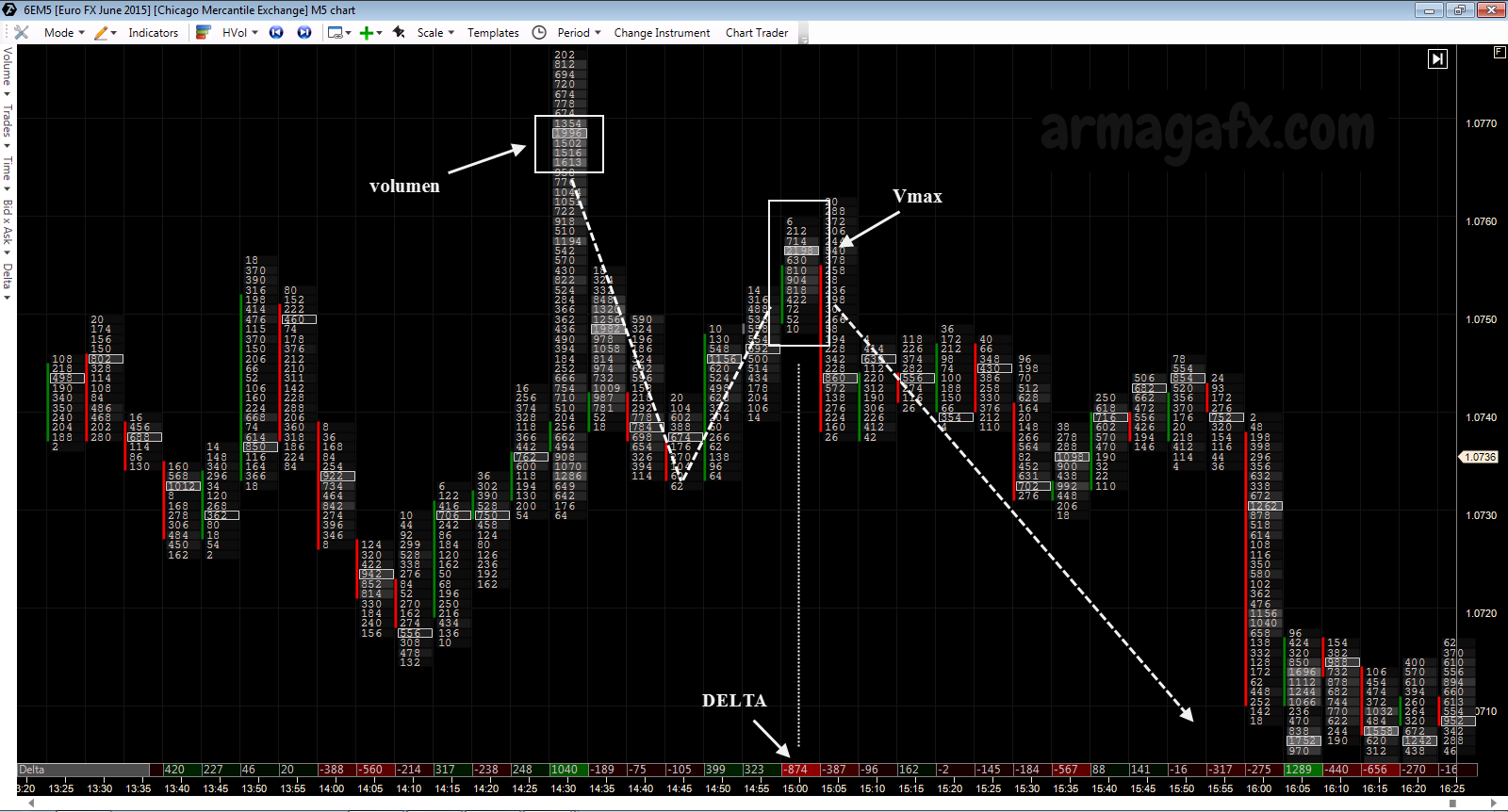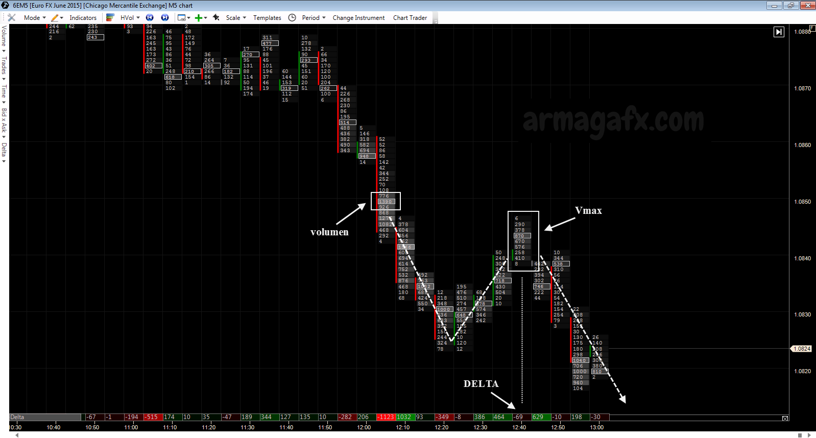 Mi trabajo diario consiste en leer el gráfico de order flow. Cuando empezé a mirarlo por primera vez no podía entender nada. Pero con tiempo empezé a notar algunas situaciones que se repetian dia tras dia. Analizandolas desarrollé unos cuantos patrones que utilizo hasta hoy en mi operativa. Uno de ellos lo intentaré explicar ahora.