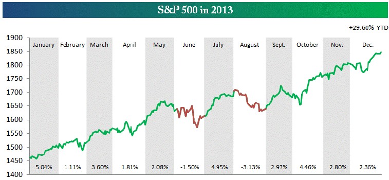 En el gráfico anterior se puede ver que durante 2013 solo hubo dos meses negativos, junio y agosto. Y se terminó el año con una racha de 4 meses seguidos de ganancias. La ganancia del año fue un 29.6%.