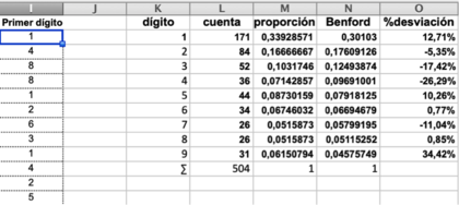 Pero es así. Y este hecho resulta que es muy útil. Supongamos que cuando alguien declara sus impuestos “maquilla” las cifras. Entonces estas cifras dejarán de seguir un orden natural de Benford y formarán un patrón más alterado (y menos “Benford”) que permitirá detectar esta anomalía.
