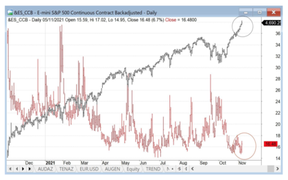 Lo que sí que noté ayer es que subió el SP500 pero también subió el VIX. Y eso me pareció raro ya que el VIX y el SP500 tienen una clara y demostrable correlación inversa así que con subidas del SP500 lo normal hubiera sido que cayera el VIX.