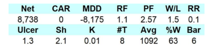 Si ahora pruebo este código sobre el futuro mini del SP500 desde 1997 hasta ayer encuentro las siguientes estadísticas: