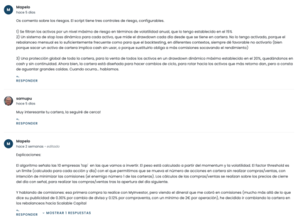El usuario Mapelo se había animado a probar una estrategia de momentum sobre el S&P 500 y para ello había pensado en usar MyPortfolio para medir el desempeño de la estrategia. Pero lo más valioso no es solo la estrategia en sí: en la sección de comentarios está documentando todas las decisiones y además ha contestado a las dudas que se le han planteado. ¡No perdáis el tiempo y seguidle!