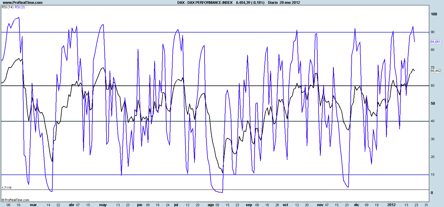 A parte del exceso de compra, también comentamos la formación de divergencias bajistas en gráfico horario entre el precio y el Macd, dichas divergencias también se dan en el DAX .