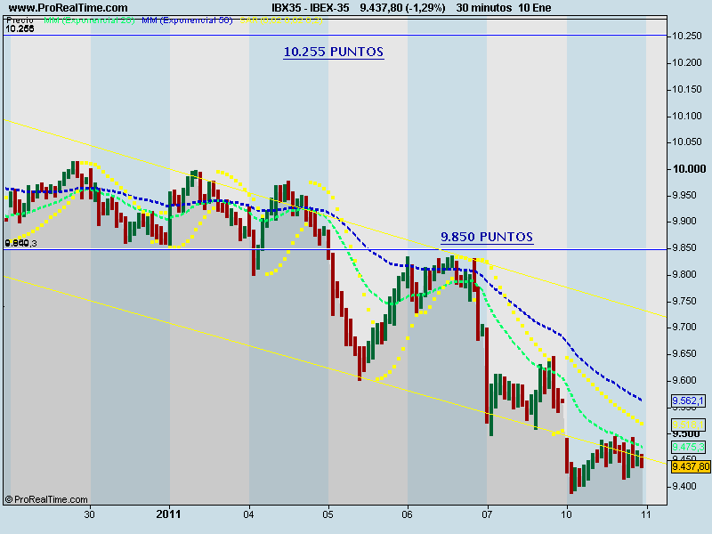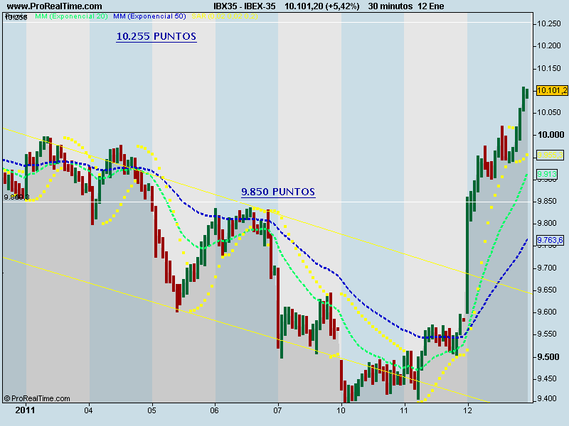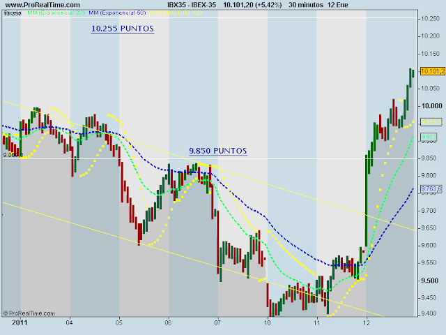 Por tanto, teniendo en cuenta que los bancos centrales son los únicos que baten al mercado y que su objetivo es que los mercados de renta variable permanezcan estables, consideramos como escenario más probable el planteamiento que venimos proponiendo desde el día 7 de diciembre, mientras el Ibex 35 se mantenga por encima de 9.770 puntos, es muy probable que hayamos hecho suelo en los mínimos del día 30 de noviembre y se dirija hacia los 10.400 puntos, con un primer objetivo en los 10.268 puntos (38,20% de retroceso de Fibonacci desde el suelo de marzo de 2009).