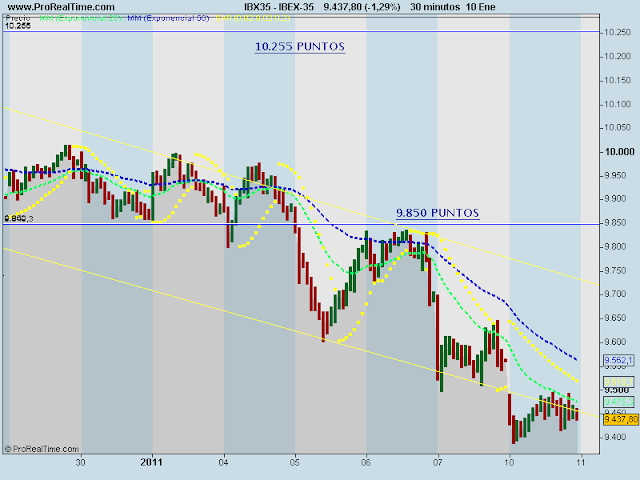 En el siguiente gráfico se puede apreciar la situación del Ibex 35 al cierre del lunes :