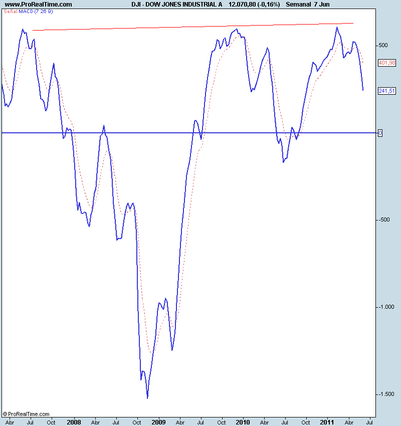 Divergencia alcista en el DOW JONES INDUSTRIAL entre el precio y el Macd semanal