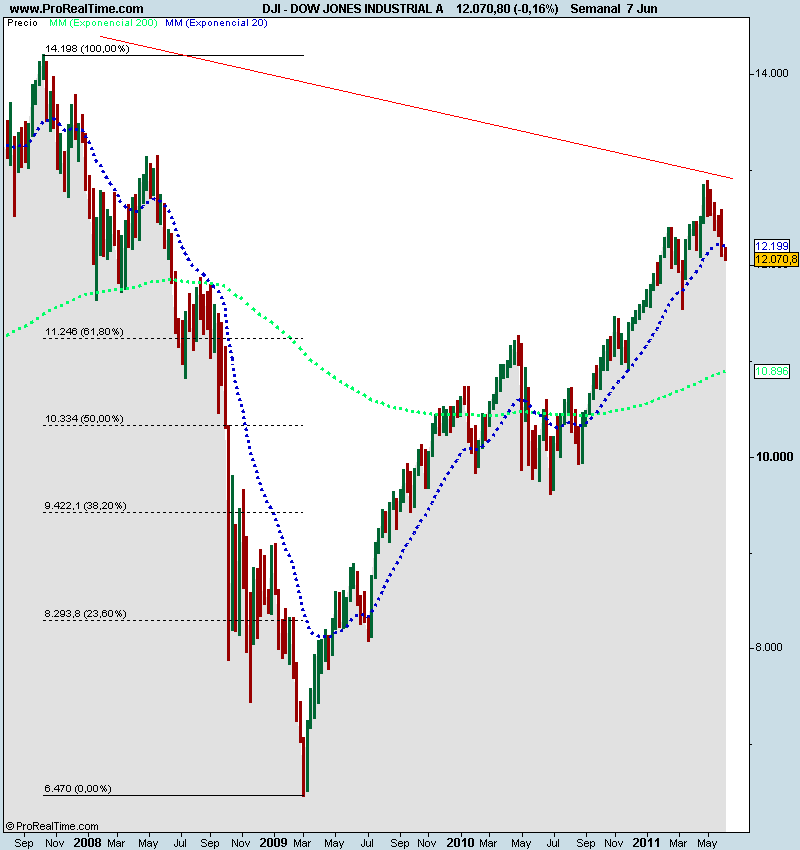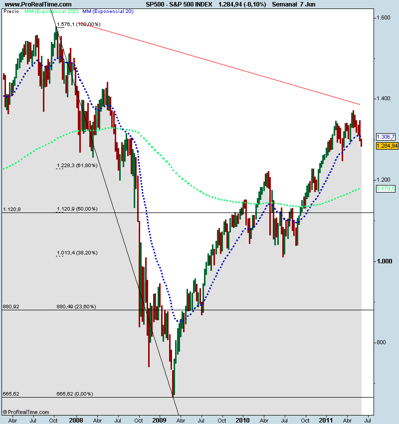 “ Vista la debilidad demostrada el día 6 de mayo ante la publicación del informe del mes de abril y el comportamiento que han tenido el S&P 500 y el DOW JONES INDUSTRIAL esta semana, creemos que lo más probable es que rompan soportes y se vayan a buscar los mínimos del mes de abril “