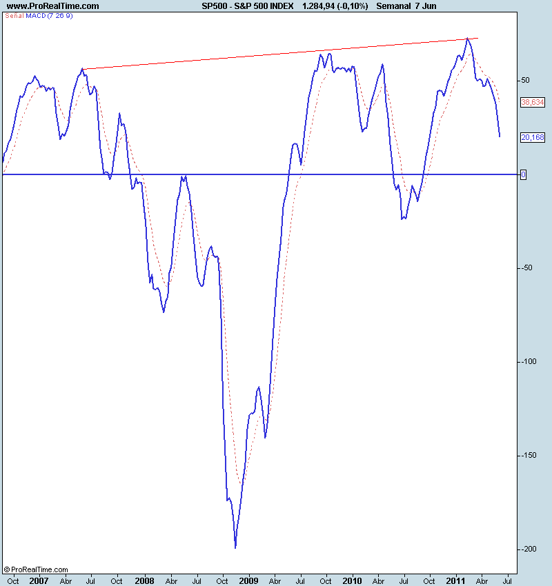 Divergencia alcista en el S&P 500 entre el precio y el Macd semanal