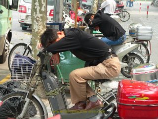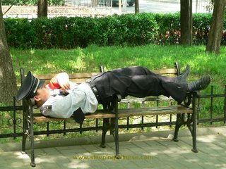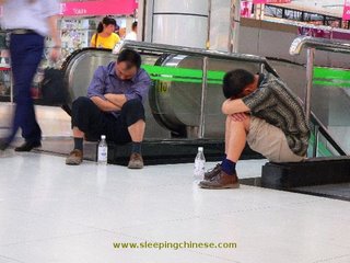 Por todos es sabido que los Chinos trabajan a todas horas, y la conocida huelga a la Japonesa, que consiste en trabajar, trabajar y trabajar, con el fin de generar un elevado stock que ocasione serios problemas de logísitica a los empresarios. Pues en la siguiente página podéis ver que "todo es un montaje, los Chinos no trabajan, únicamente duermen", pero lo curioso del tema no es que duerman, sino que lo hacen en cualquier lugar y para muestra unas fotos: