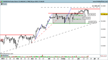 El pasado día 31 de mayo de 2021 entré de nuevo largo en el DAX; en 15.520 puntos