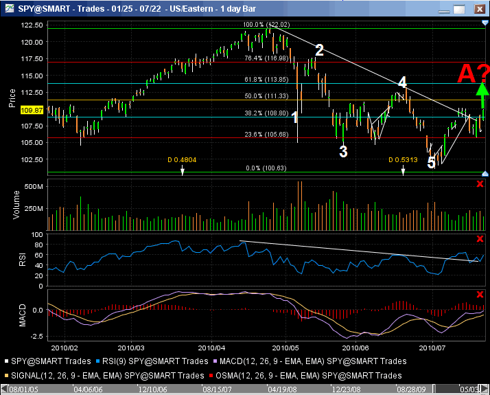 Voy a plantearme como opción que el SPY esté desarrollando una onda A de una plana (que sería la 2ª de la onda 5ª del ciclo bajista inicido en 2007).