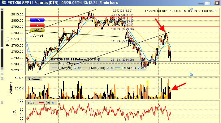 Yo diría que un rebote hasta los 2875 mínimo en el ESTX, pero esta vez (para variar) no lo tengo nada claro. Atención al gráfico intradía de ESTX50: