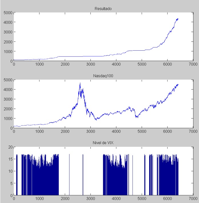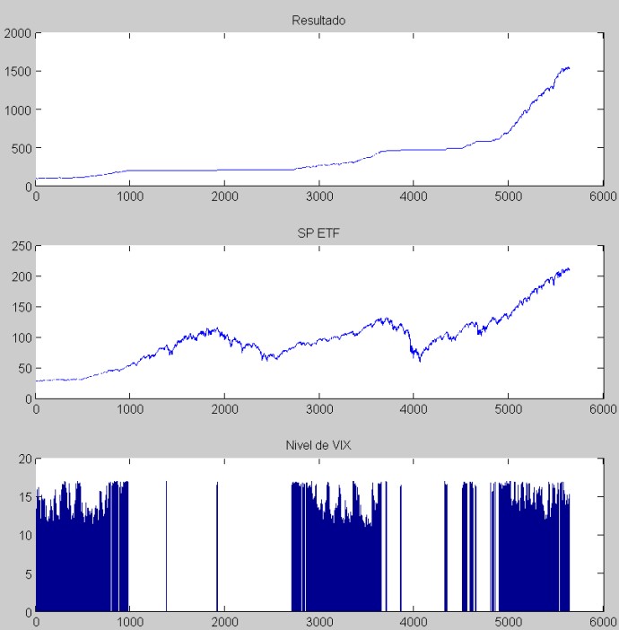 Posteriormente aplicamos la estrategia de estar invertidos en S&P siempre que el VIX se encontrase dentro de la franja de 10-17 y mantenernos fuera de la renta variable, o al menos del S&P (porque hay otros mercados que se rigen por otros indicadores y franjas) siempre que el VIX no estuviera dentro de esa franja.