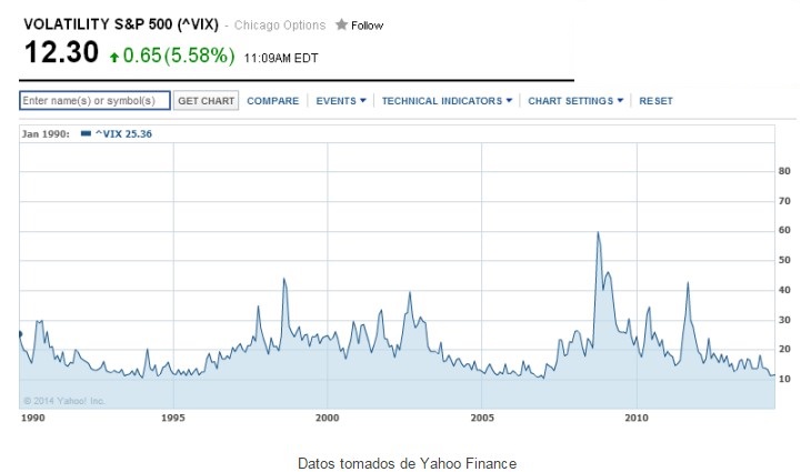 Desde el año 1990 ha habido 3 periodos claramente diferenciados, con volatilidades muy bajas, y otros 3 periodos con volatilidades elevadas.