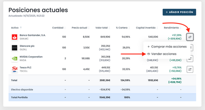 Seria bueno que cuando creas la cartera aparte de meter la compra de una accion se podria realizar la venta, para controlar tanto la compra como la venta de un activo