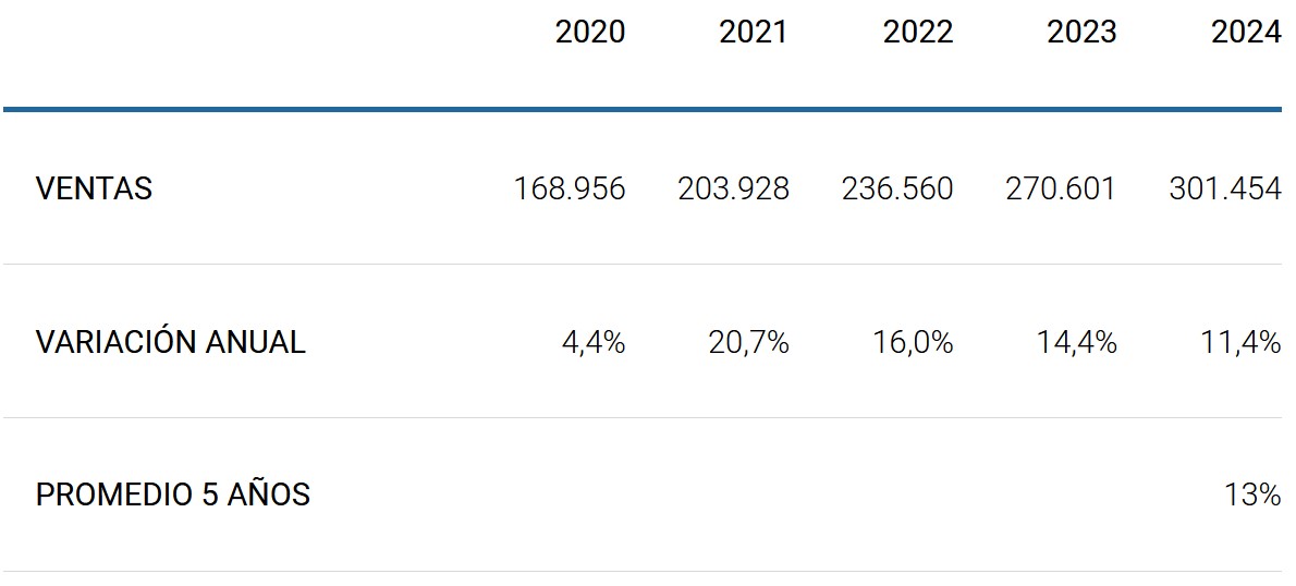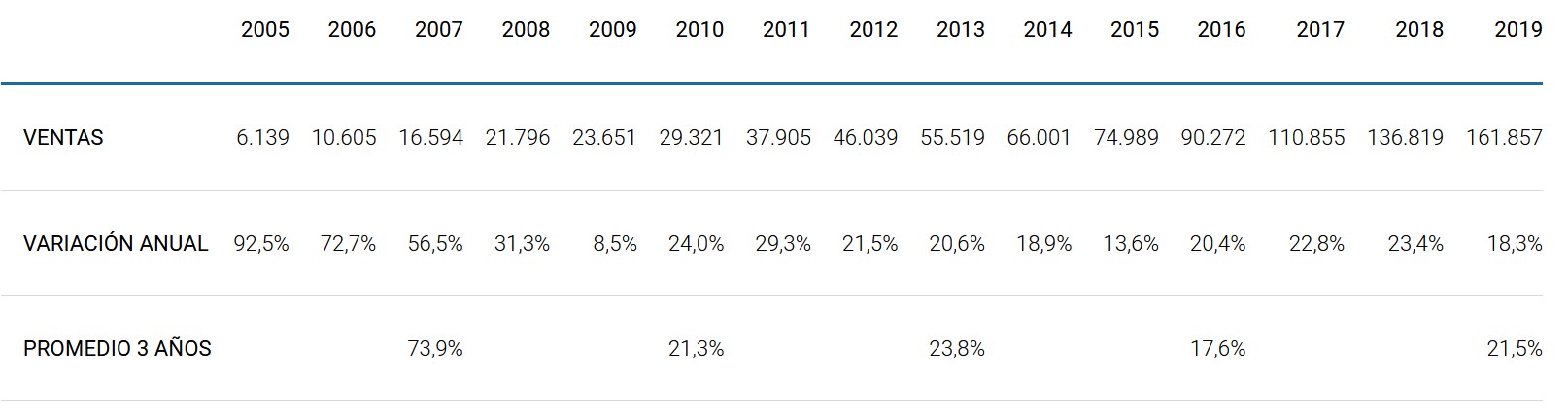 Las ventas han crecido fuertemente en todo el periodo estudiado: