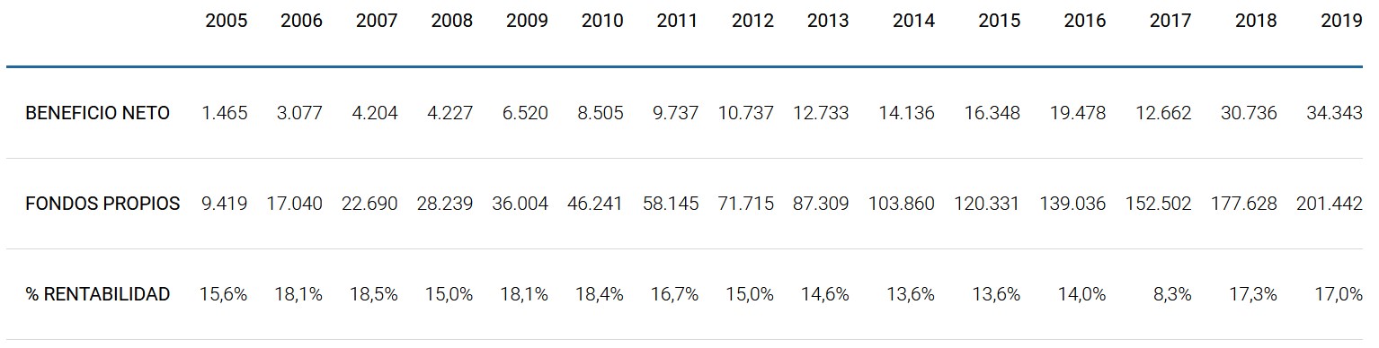 Los porcentajes de rentabilidad sobre los fondos propios son bastante buenos, a pesar de estar castigados por la acumulación de tesorería excedentaria en la empresa: