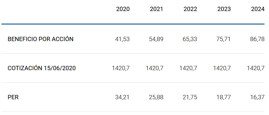 Para el actual ejercicio se espera que sus beneficios se reduzcan el -15,7% y que en el año 2.021 se superen los niveles del 2019.