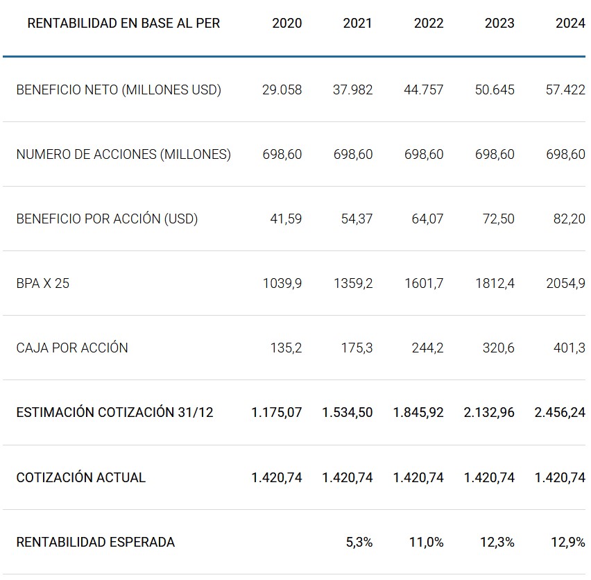 En la siguiente tabla detallamos las rentabilidades esperadas en base a las previsiones de los analistas: