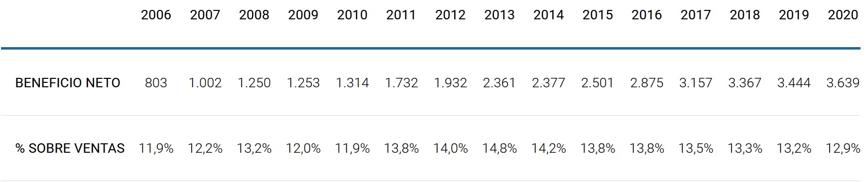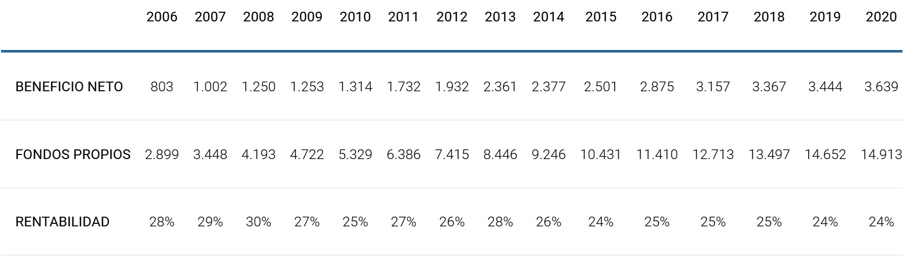 A destacar, que la rentabilidad sobre fondos propios que obtiene Inditex, sin necesidad de acudir al apalancamiento, es muy buena (24% en el ejercicio 2.019-2.020).