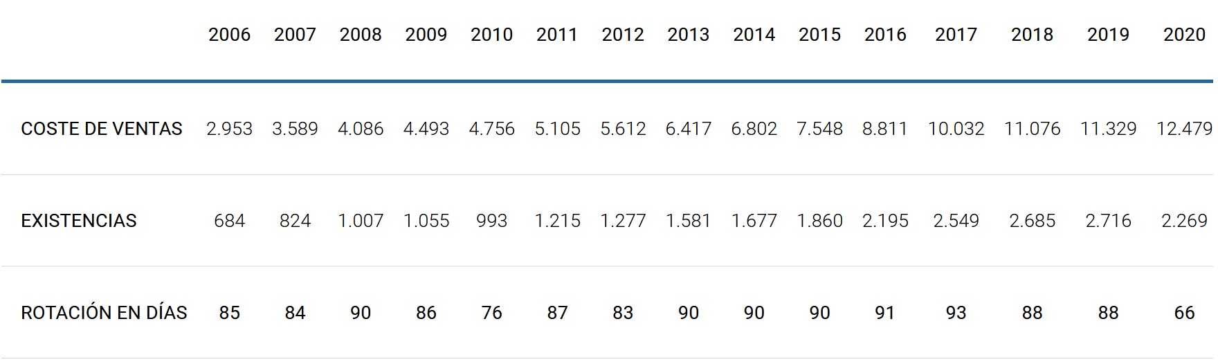 Un aspecto relevante es que la productividad de la plantilla, a pesar de la fuerte rivalidad competitiva existente en su sector, aumenta durante los últimos años, tal y como refleja la evolución de la cifra de ventas por empleado: