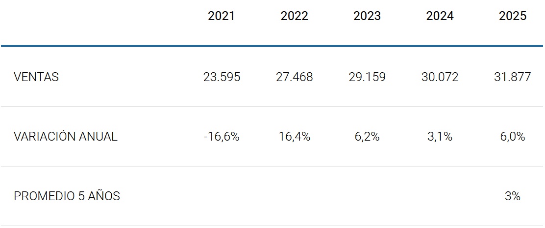 Las ventas de la empresa han crecido con buen ritmo durante todo el periodo estudiado, si bien se observa una cierta tendencia a ralentizarse en su crecimiento: