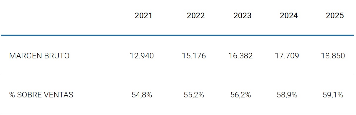 Como consecuencia de la fuerte rivalidad competitiva existente en el sector, el porcentaje de margen bruto sobre ventas presenta una tendencia descendente durante los últimos años: