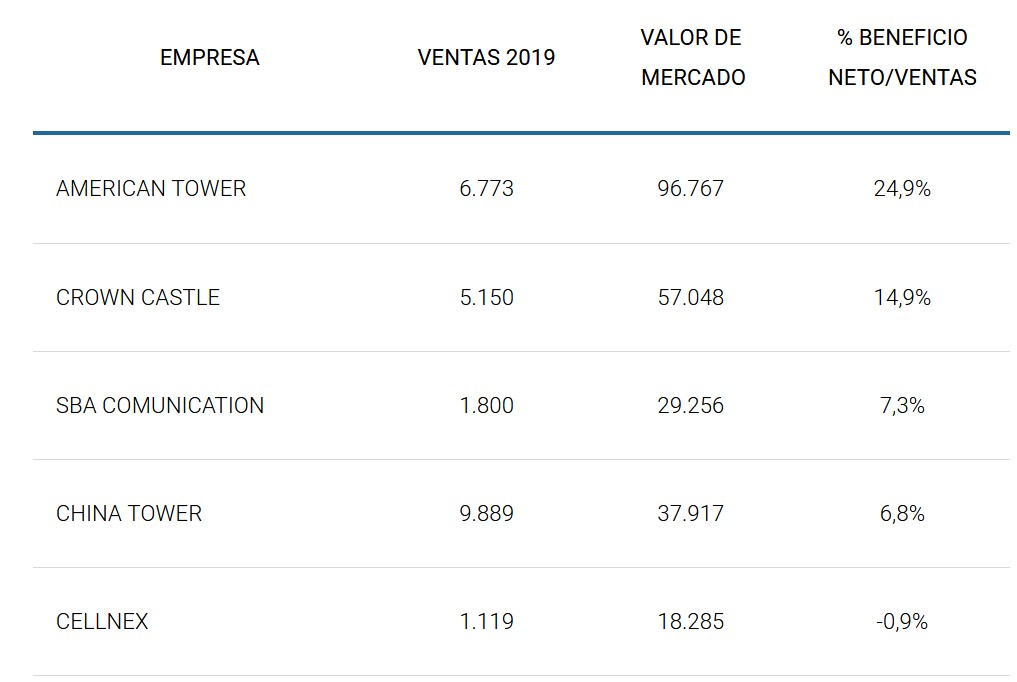 Los especialistas prevén que las empresas propietarias de torres de telefonía verán duplicados sus ingresos en los próximos cinco años, gracias al despliegue de la red 5G y al incremento del uso de los dispositivos IOT (Smart Cities, coches conectados, etc.).